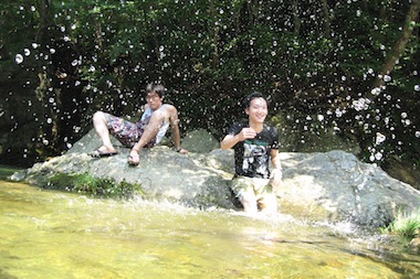 羽鳥湖に流れ込む川の上流は、小川のせせらぎがたくさんあります。つめた〜い水に裸足でつかれば、頭のてっぺんまでキーンと冷えちゃいます。