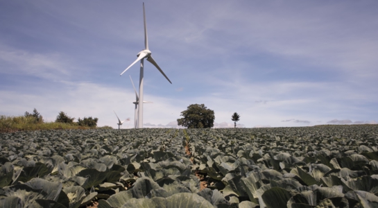 「郡山布引(ぬのびき)風の高原」は、猪苗代湖の南に位置する標高約1,000mの布引高原です。この高原には平成19年2月に営業運転を開始した、国内最大規模の風力発電施設があります。